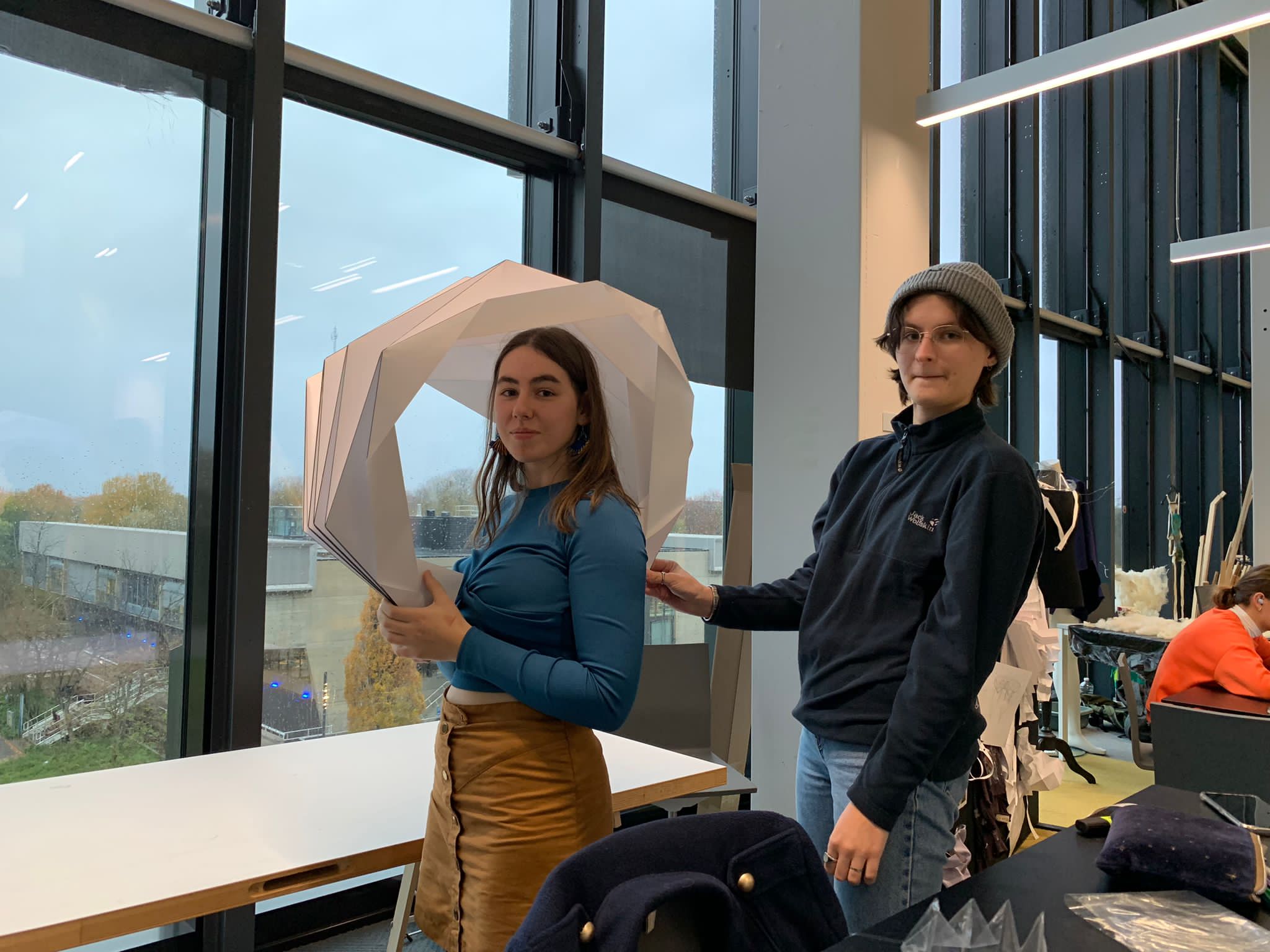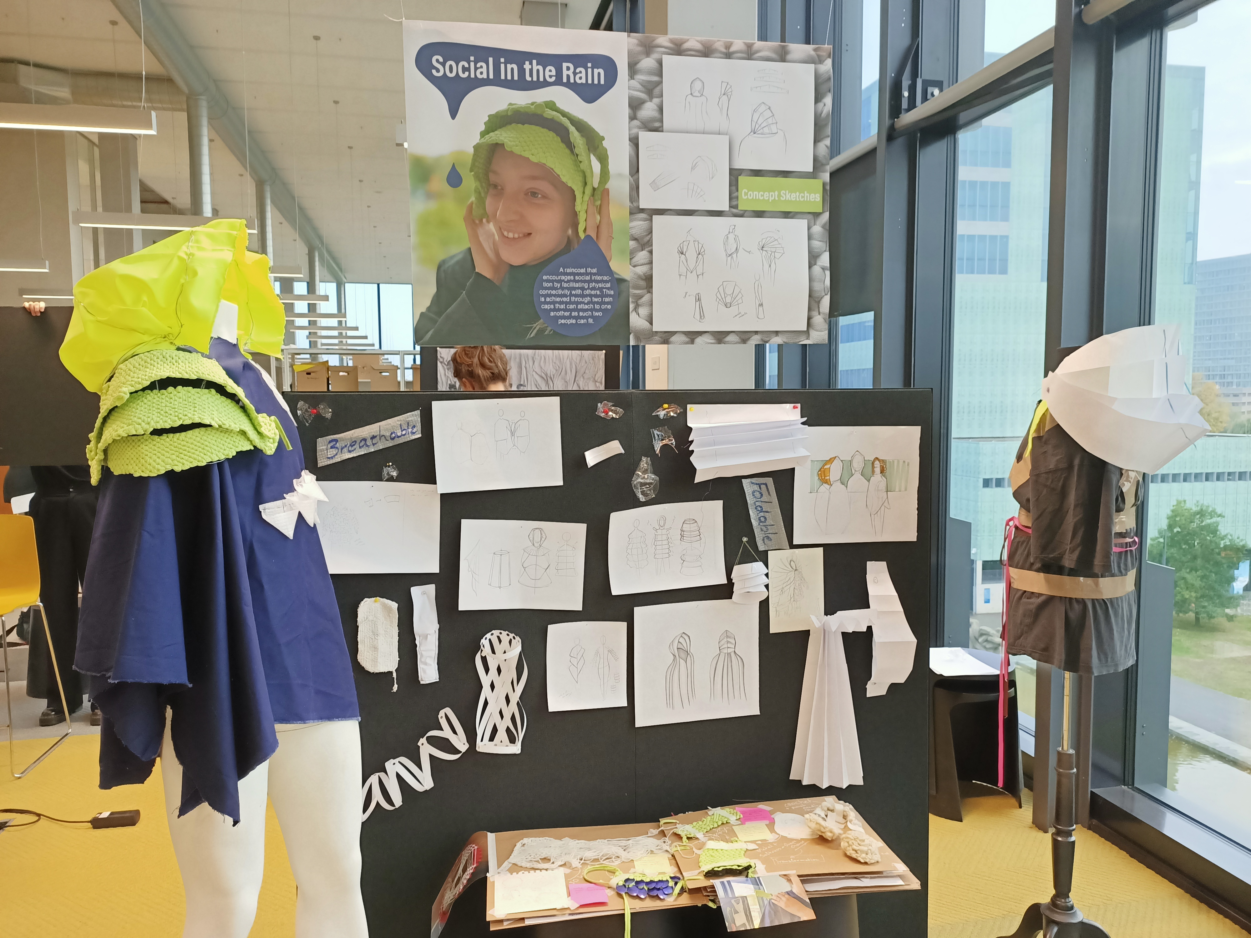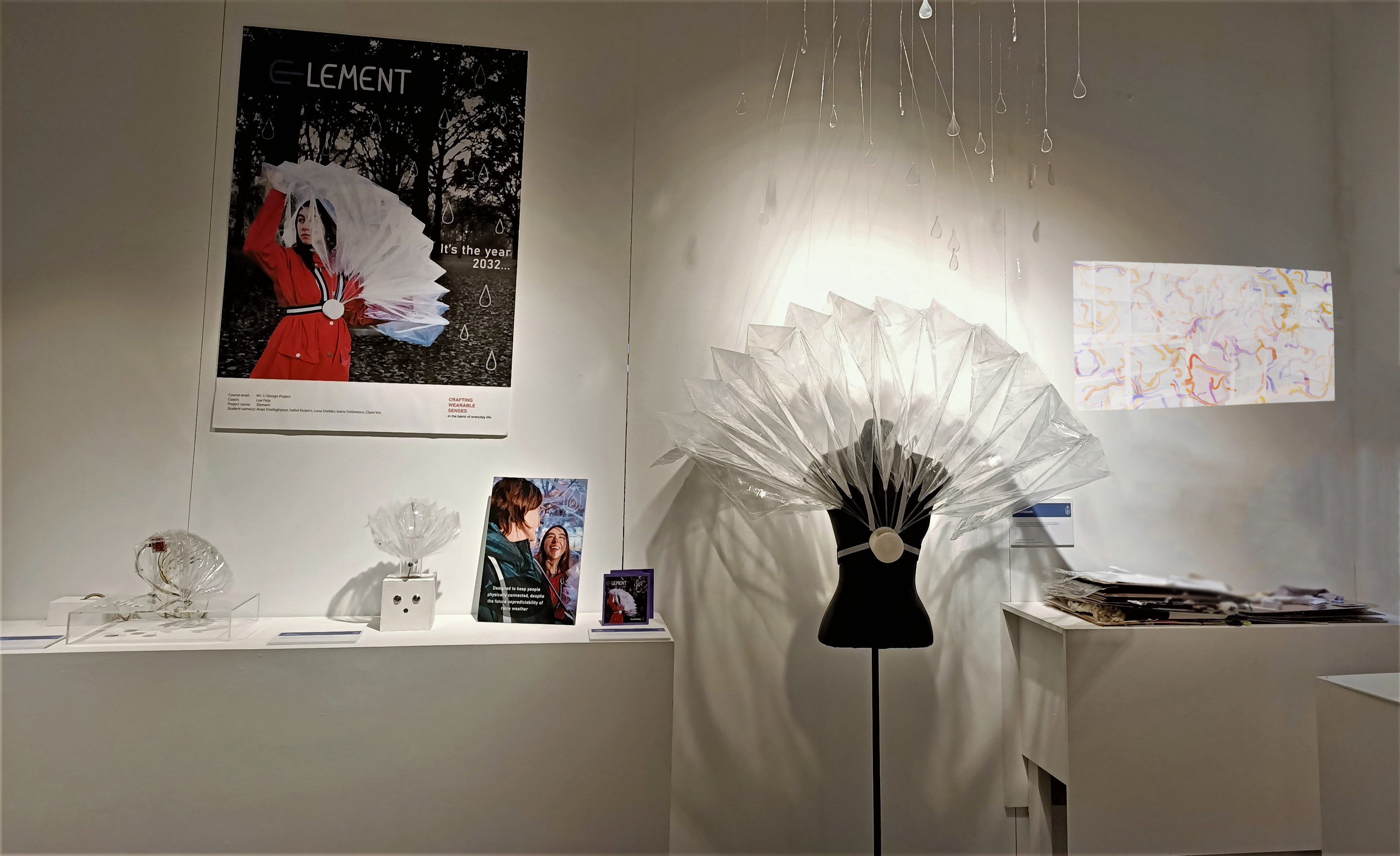 Element emerged from a range of experiments that started to surround the theme of rain, social connection and shape transformation. In this group project I worked on implementing sustainability, bringing all experiments together and being a driving force for realization and bringing the team together. It was a deep dive into materials, production and making that sustainable.