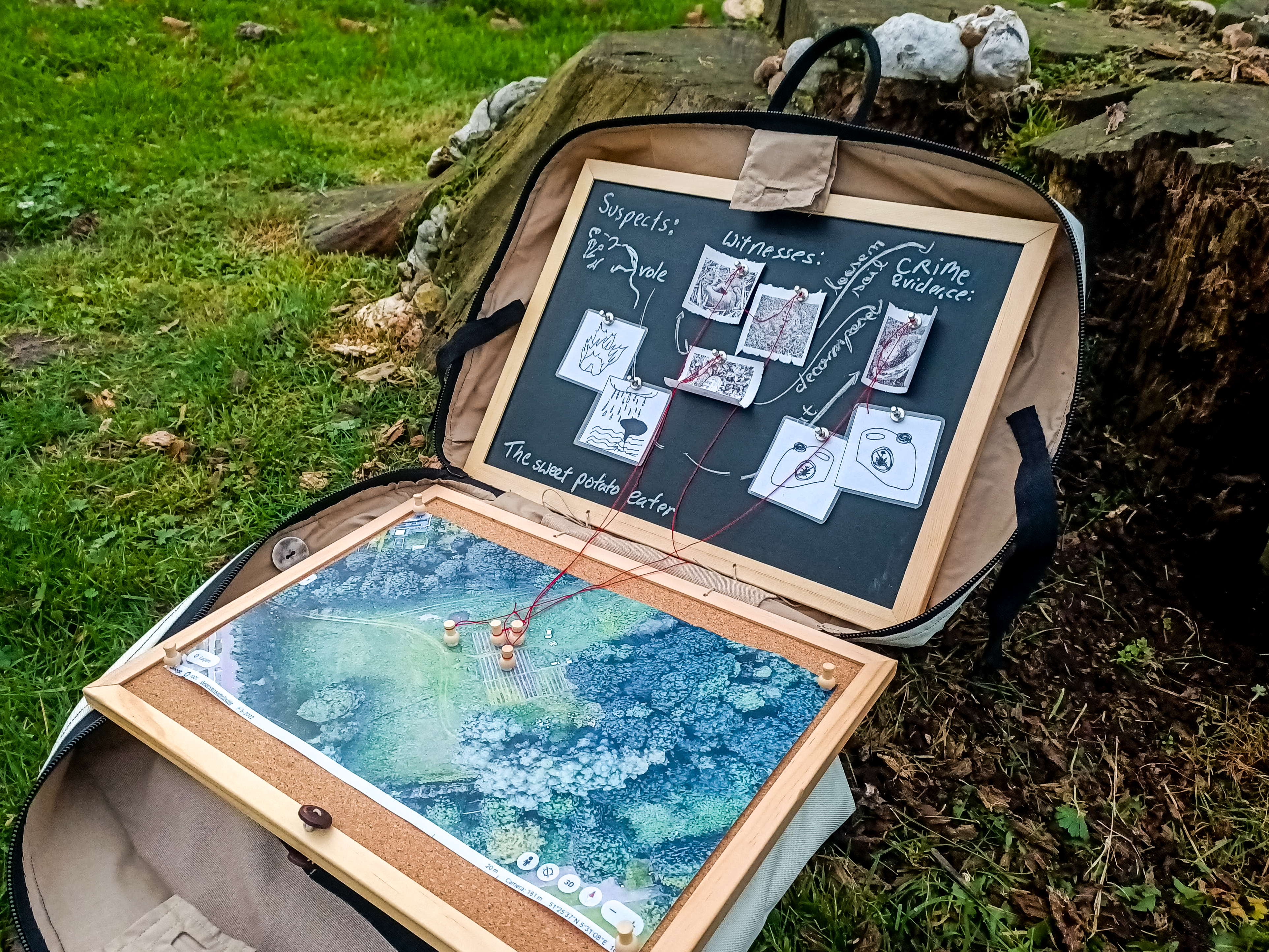 Once all the traces have been placed, the Chief Inspector leads a group discussion about possible connections: what could have happened? Who plays what role in this ecosystem? This leads to a deeper understanding of ecological relationships and roles, while also considering human impact. Participants are invited to reflect: what happens if, for example, humans intervene and combat a ‘suspect’ species?