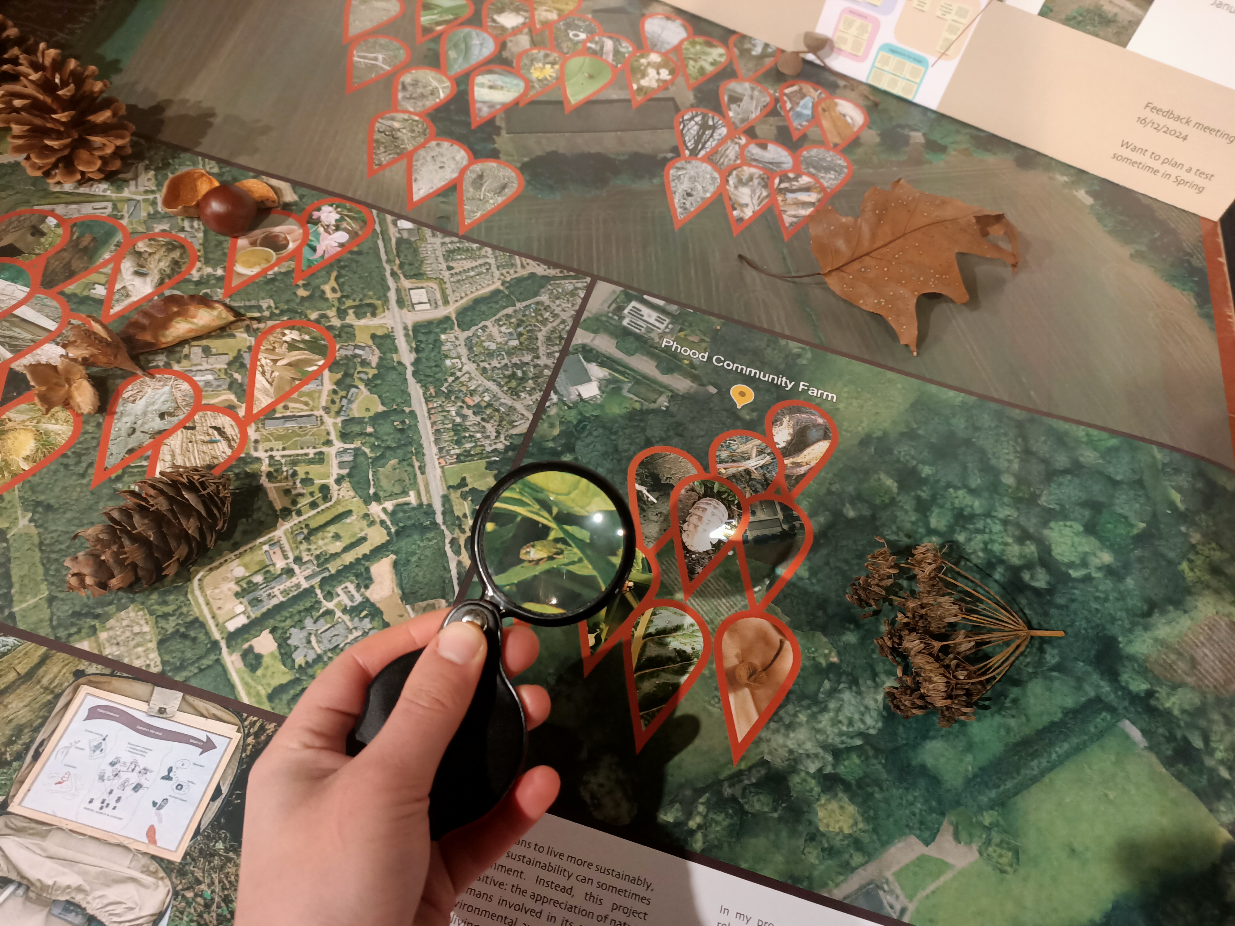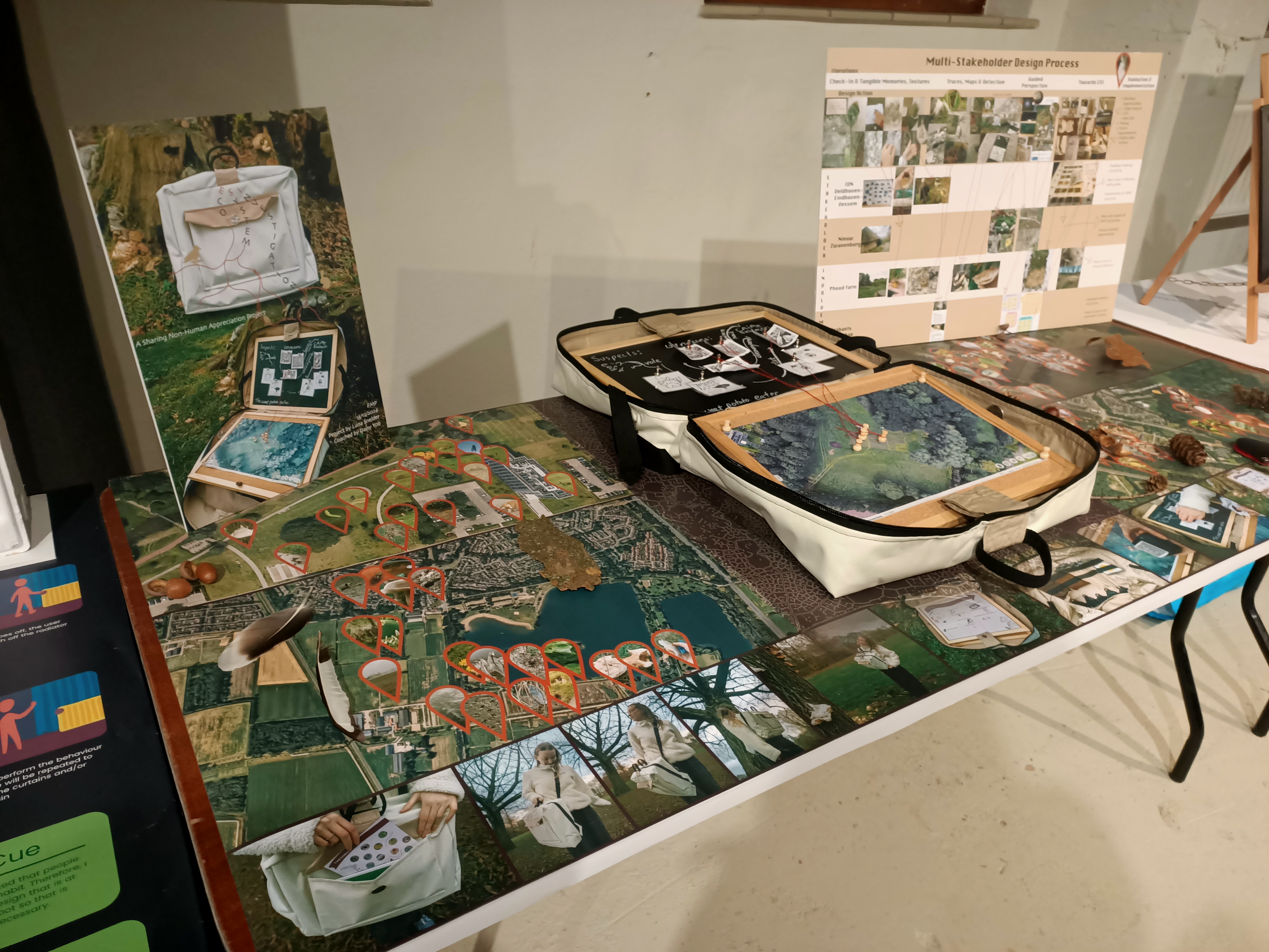 EcoSystem Investigation (ESI) emerged from collaboration with IVN Veldhoven-Eindhoven-Vessem, Nieuw Zwanenburg, Phood Farm and Brabants Landschap. It is a tool for sharing non-human appreciation beyond nature-related communities by enabling their experts to create interactive experiences for adults involving finding traces and analysing their relations to uncover ecosystem’s entanglements and humanity’s position within them. This can raise nature-connectedness and foster intrinsic motivation for sustainable behaviour. This project’s multi-perspective approach and societal mission embody my identity and vision as designer.